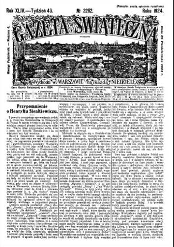 Przypomnienie o Henryku Sienkiewiczu, Gazeta Świąteczna, 1924, nr 2282, s. 1