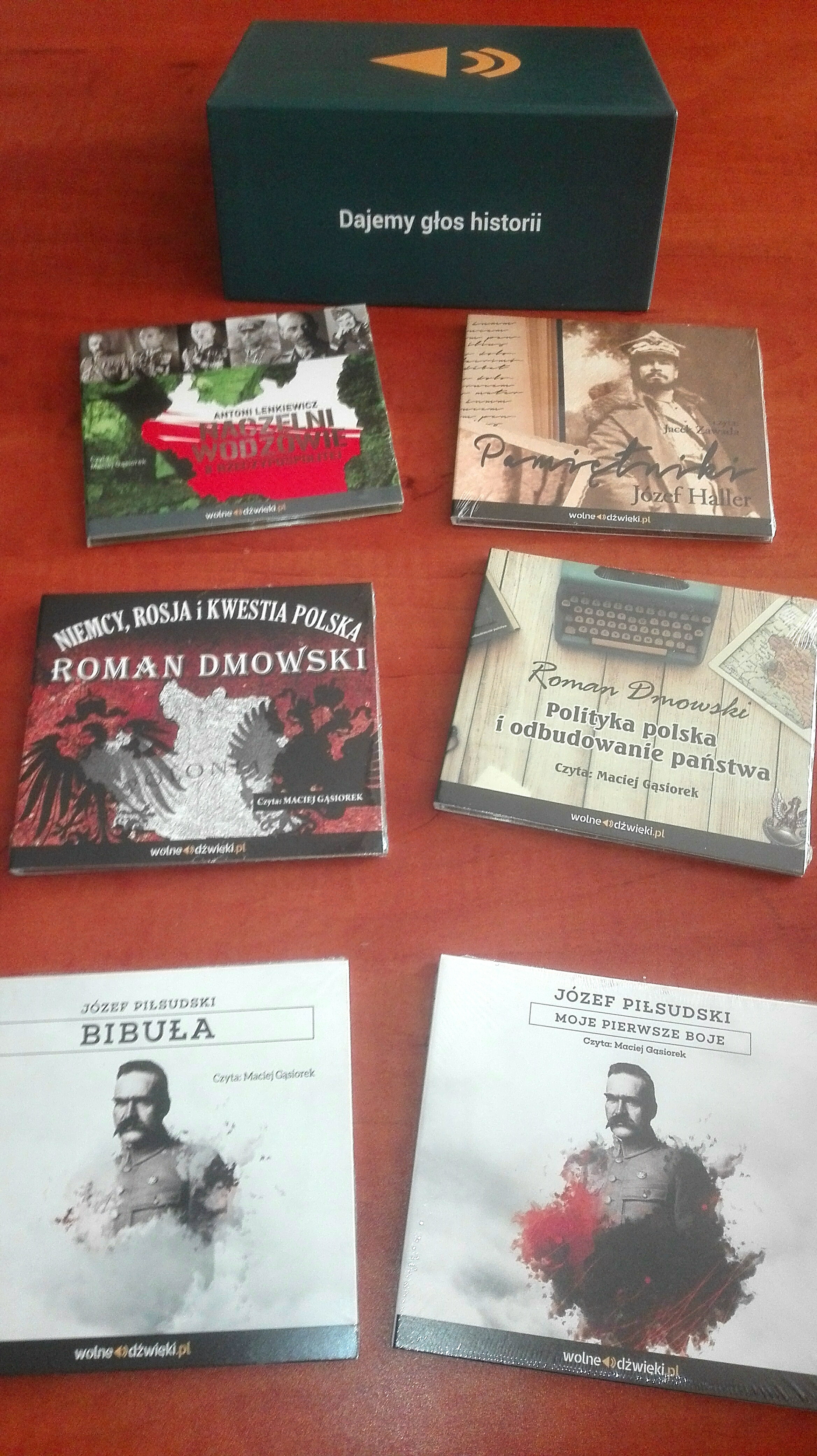 Na okładkach przekazanych przez Fundację płyt możemy odnaleźć nazwiska m.in. Piłsudskiego, Dmowskiego, Hallera, Andersa- co w świetle obchodzonego w tym roku 100-lecia odzyskanie przez Polskę niepodległości, powinno znaleźć swoich odbiorców w szkołach. Wśród darów bez trudu odnajdziemy Ossendowskiego, Paska, Piaseckiego, Jasienice, są również płyty poświęcone Zbrodni Katyńskiej i działalności konspiracyjnej m.in. Zofii Siedzikówny INKI.